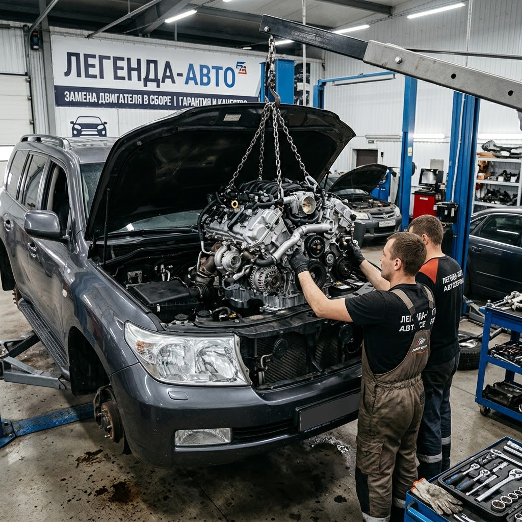 Автосервис «Легенда‑Авто» предлагает услугу замены двигателя в сборе - комплексное решение для автомобилей с изношенным или повреждённым мотором. Мы гарантируем качественный монтаж, соблюдение заводских стандартов и полную юридическую поддержку при оформлении.